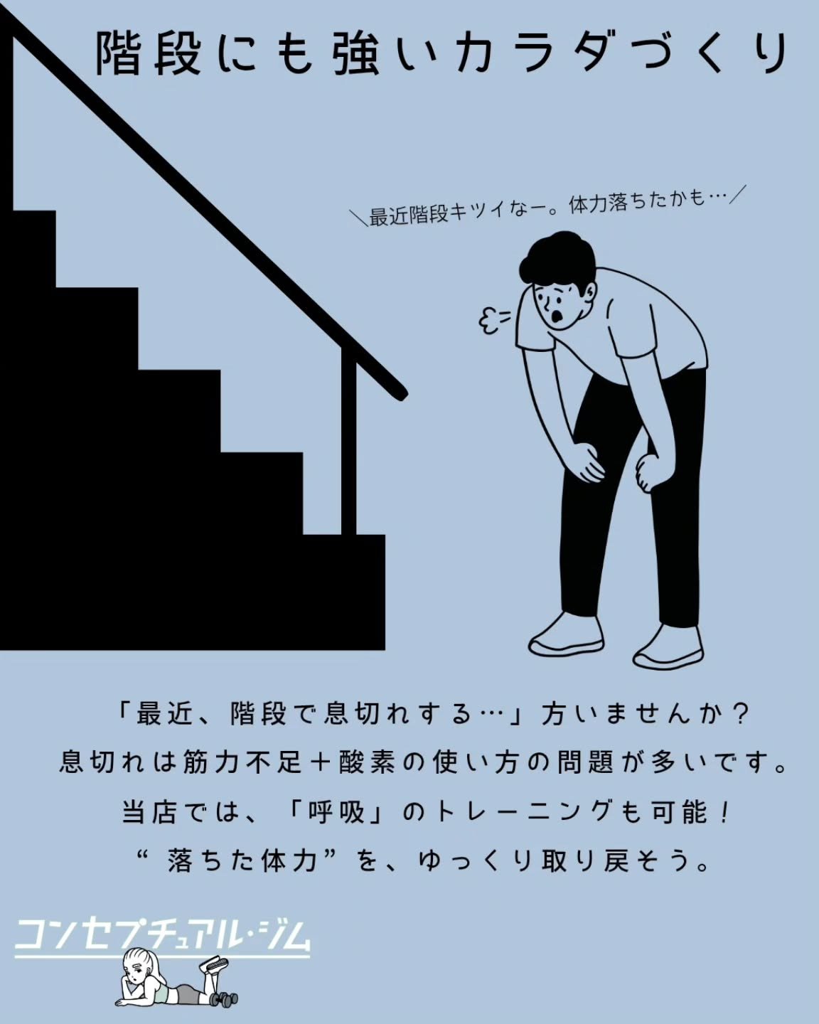#息切れ #体力づくり #呼吸トレーニング #コンセプチュアルジム #健康習慣 #階段も怖くない