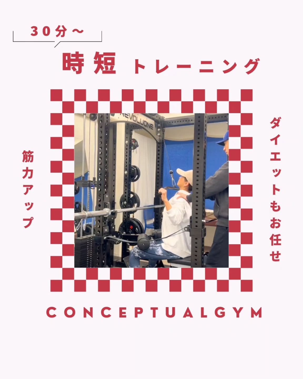 「時間がない」を理由にしないトレーニング!コンセプチュアルジムでは、運動生理学と機能解剖学に基づいたプログラムを提供。30分...