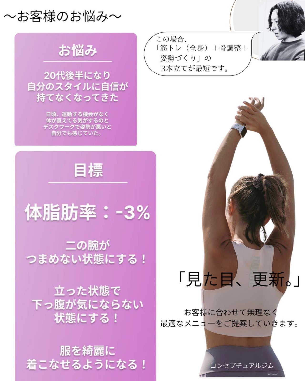 #見た目更新 #骨調整 #下っ腹解消 #二の腕痩せ #コンセプチュアルジム