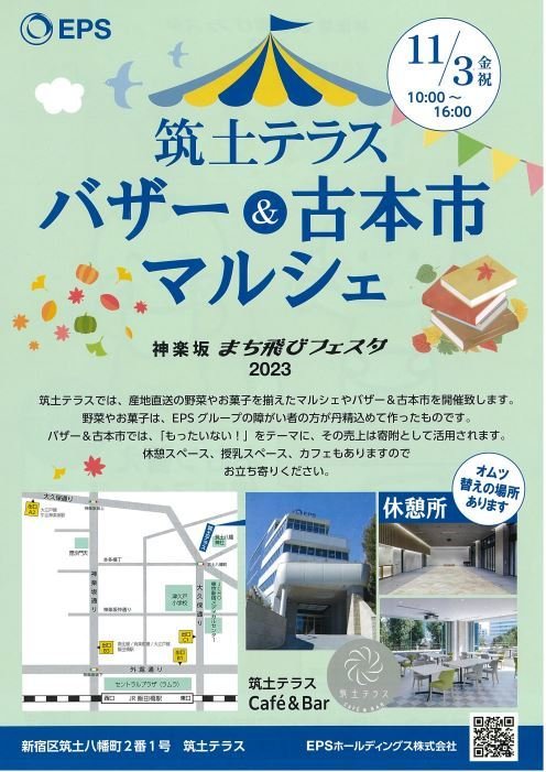 | 場所 | EPSホールディングス株式会社 筑土テラス1階ホール 〒162-0815 新宿区筑土八幡町2番1号 筑土テラス https://www.eps-holdings.co.jp/about/profile |