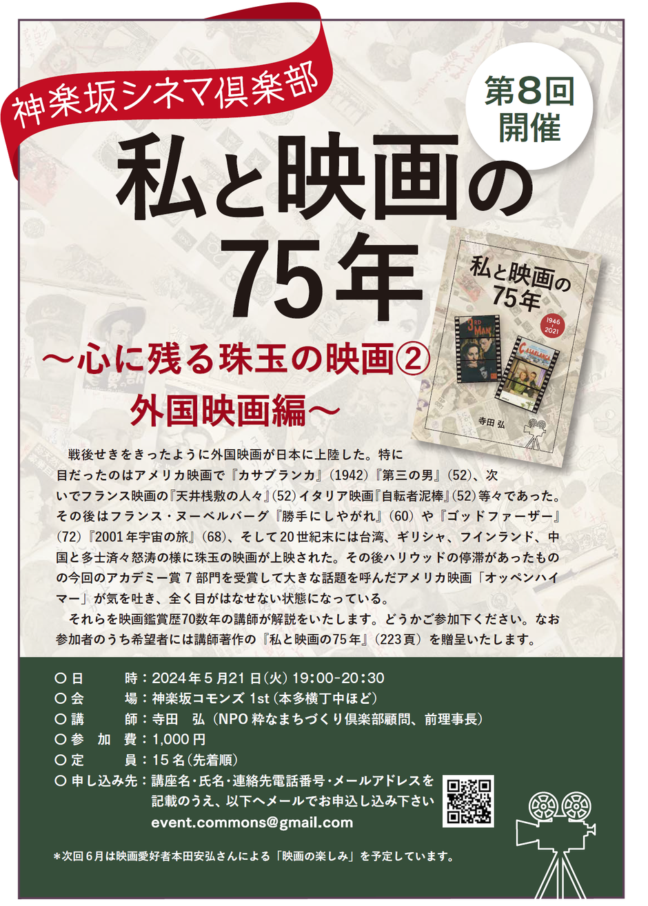 【満員御礼】 第8回神楽坂シネマ倶楽部私と映画の75年 ~心に残る珠玉の映画② 外国映画編~ (2024/5/21)