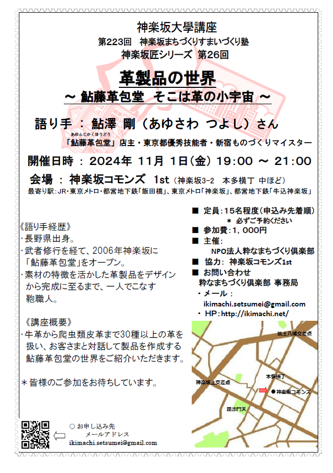 | 場所 | 神楽坂コモンズ 1F (神楽坂3-2 本多横丁 中ほど) |