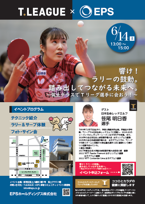 T.LEAGUE×EPS 響け、ラリーの鼓動。踏み出してつながる未来へ。 ~筑土テラスでTリーグ選手に会おう!~