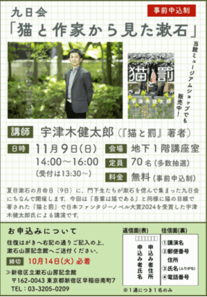 【漱石山房記念館】九日会「猫と作家から見た漱石」