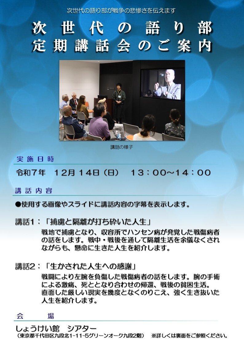| 場所 | しょうけい館(戦傷病者史料館)2階シアター |
