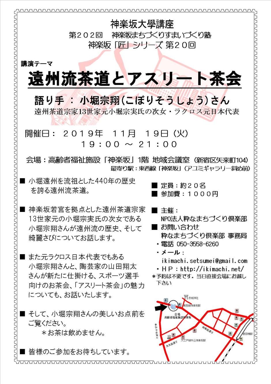 | 場所 | 高齢者福祉施設「神楽坂」1階 地域会議室 (新宿区矢来町104) 最寄り駅:東西線「神楽坂」(アユミギャラリー斜め前) |