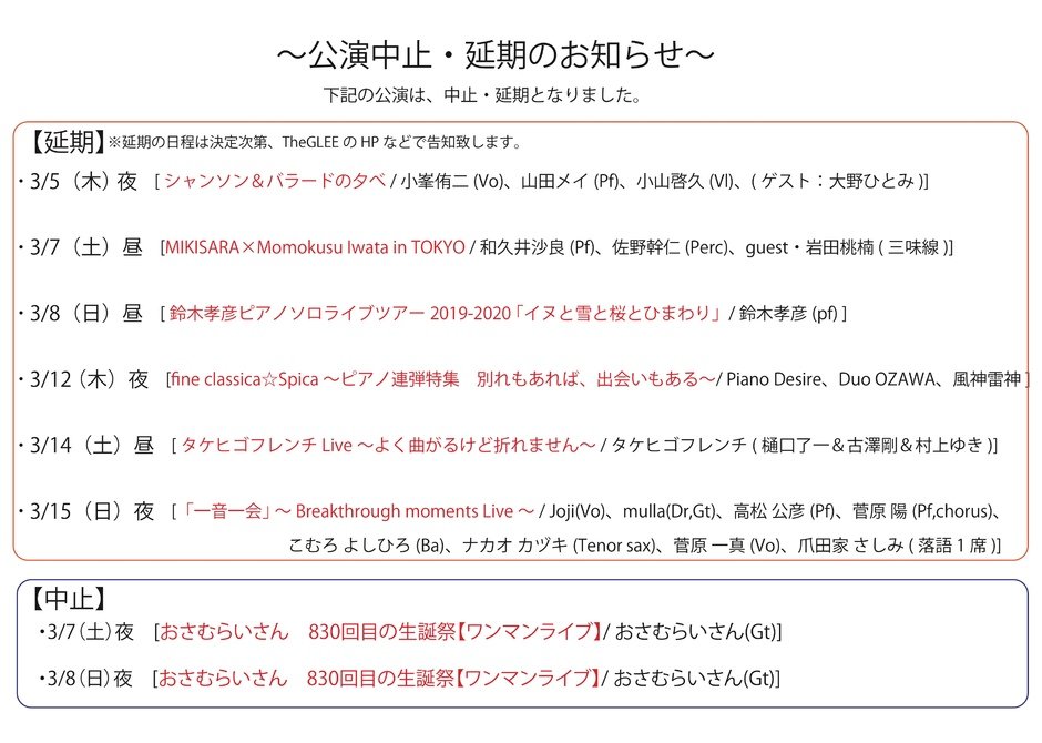 延期の日程については、改めてTheGLEEのHPやアーティストのHPから告知致します。