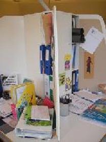 もう10年以上前ですが、まだ憧れているフインランドの小学校でみた教師達の作業机。4人が使えるようなっていて、PC,本、資料がコンパクトに収納できる。