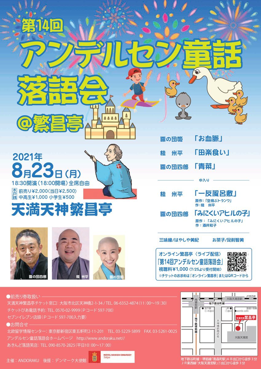 チラシできました!「第14回 アンデルセン童話落語会@繁昌亭」【デンマ-ク大使館後援】8月23日(月)場所:天満天神繁昌亭出演...