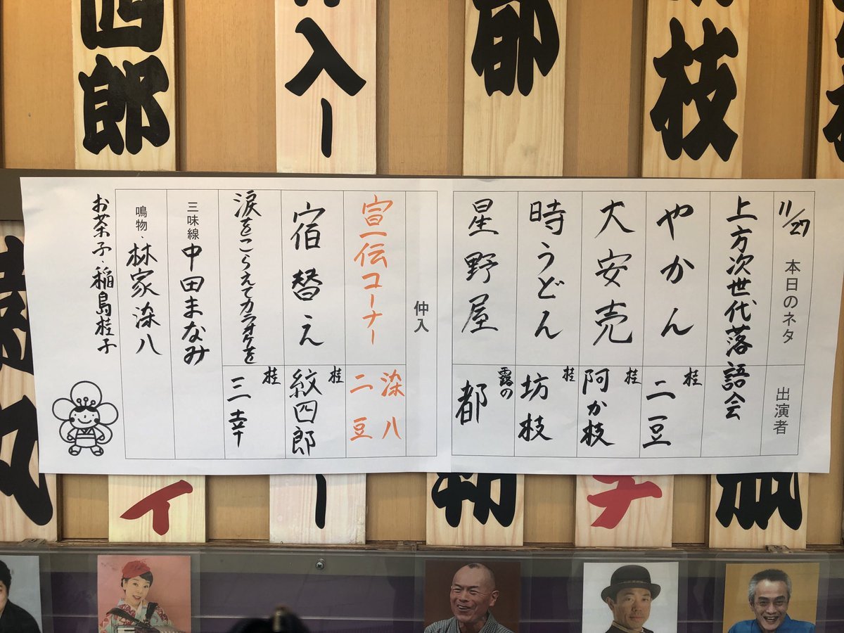 繁昌亭朝席、本日の演目。トリの三幸さんの落語は破天荒。落語のエンターテイメントでした。桂二豆さんの落語は驚くほど完成度が高く強く印象に残りました。
