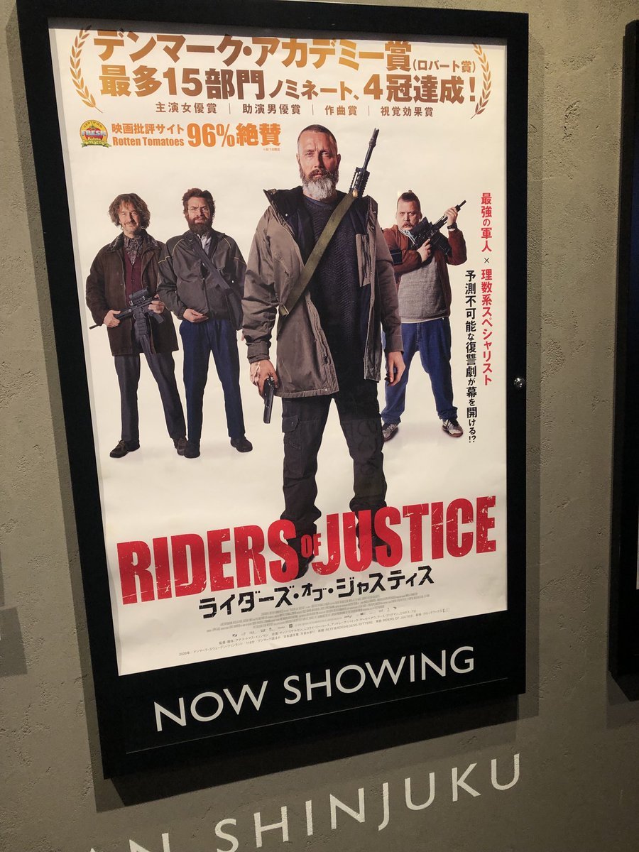 『ライダース•オブ•ジャスティス』観てきました。軽快なテンポで進むアクション映画ではなく、デンマーク人らしい人生深掘り映画。観ていて最近大阪で起きた放火テロの犯人と主人公が重なったが、最後はうっちゃりで人生に土が付くのをよけた。