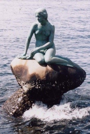 8月に大阪繁昌亭でアンデルセン童話落語会を開くのは理由があります。人魚姫像はコペンハーゲンランゲリエ河岸に設置されたのが1913年8月23日に設置されていて、大阪湾に実物の4/5の大きさの人魚姫像(写真)があるからです。デンマークのビール醸造会社カールスベア社からサントリーに送られました。