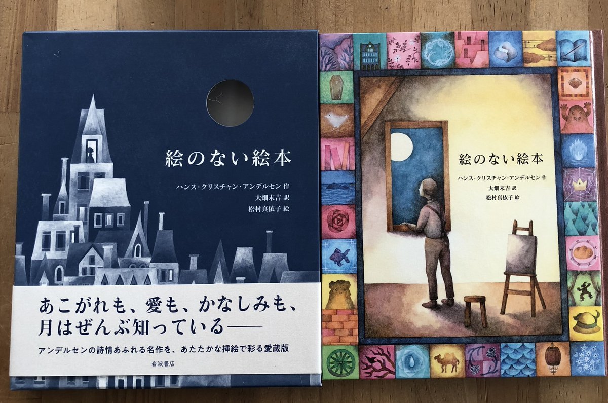 岩波書店『絵のない絵本』(H.C.Andersen著、大畑末吉訳、松村真依子絵)が到着。読むのは3度目で内容も少し忘れてます。今回は三遊亭白鳥さんの創作落語「任侠流れの豚次伝全十話」に刺激を受けたので落語化できるどうかを考えながら読みます。装丁は穴があいた箱に本をいれると月が出る仕掛けです。