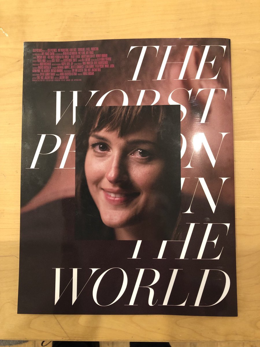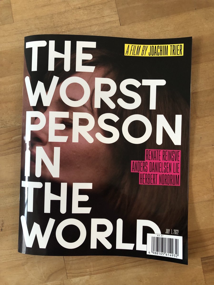 『わたしは最悪。』のパンフ。表紙、表紙裏とも、日本語タイトルがありません。主人公の職業が写真家で、ドアップの写真が収録されて...