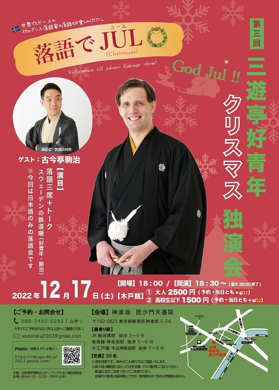 🎄12月17日?落語でJUL 第3回 三遊亭好青年 クリスマス独演会 https://t.co/OY4D66goId ゲストにお迎えするの...