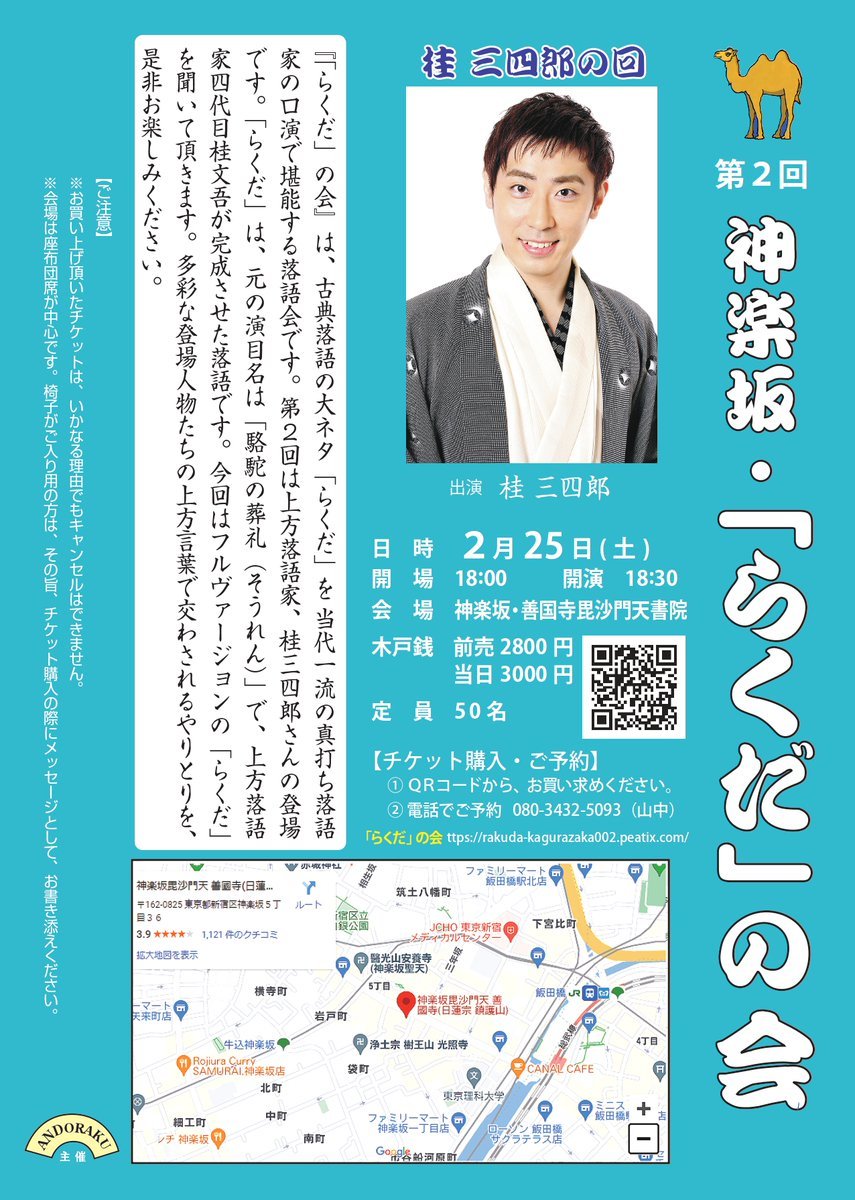 2月25日(土) 明日です! お席あります。第2回 神楽坂・「らくだ」の会-桂三四郎の回 https://t.co/2Kf06H8fKT 上...