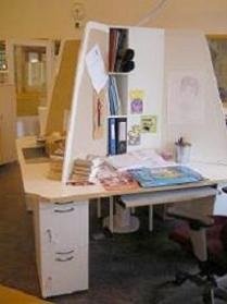 左写真:フィンランドの小中学校でみた教師の作業机。
