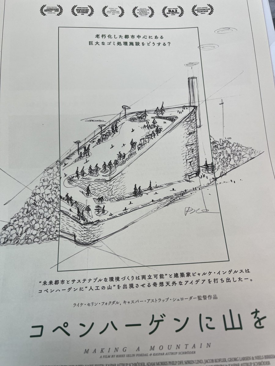 昨日夕方は明治大学の倉地先生が開いたデンマーク研究会で見たかった映画、コペンハーゲンに山を、観賞。ゴミ焼却発電所と公園(スキー場、広場、遊歩道)を合わせた巨大な施設を作るまでのドキュだ。面白いのは同国はゴミが少なくて、ゴミを輸入しているのだそうだ。