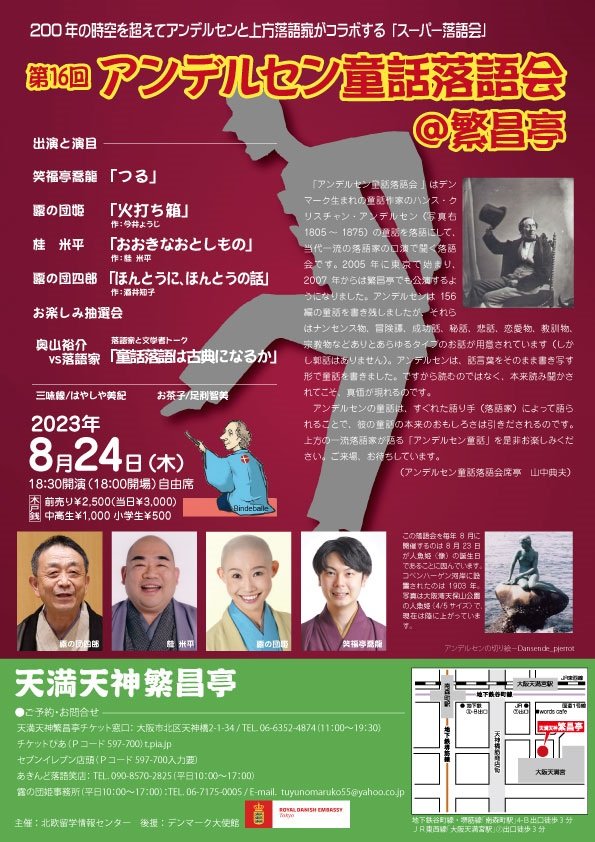 8月24日(木) 第16回 アンデルセン童話落語会@繁昌亭2006年の夏から続く落語会です。前2,500円・当3,000円・中高1,000円...