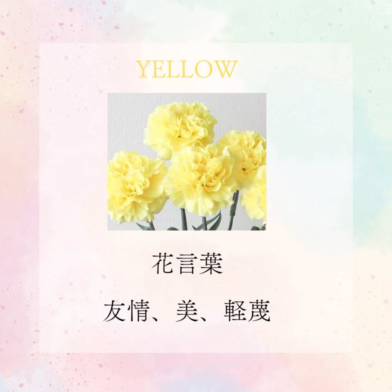 黄色のカーネーションは、ポジティブな意味や明るさがありますが、同時にネガティブな意味の花言葉もありますので、赤やピンクのカーネーションと組み合わせると無難です😊