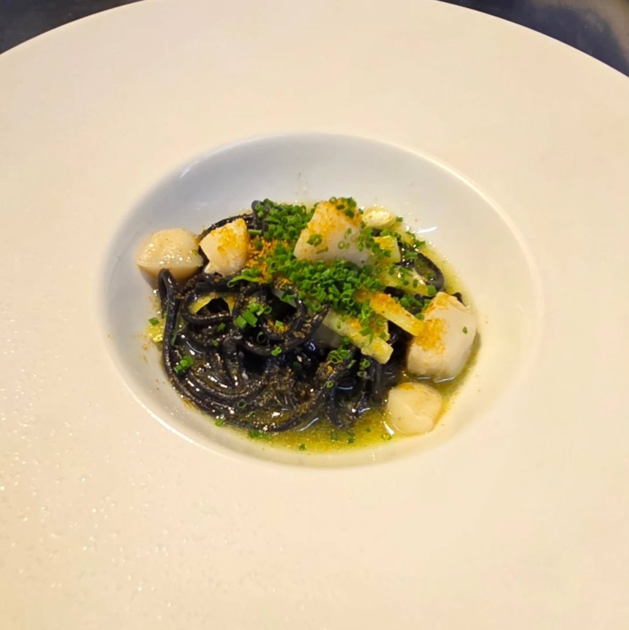 アコヤ貝💕アコヤ貝イカスミスパゲッティカラスミ黄ニラアコヤ貝は真珠貝の貝柱です😎#神楽坂イタリアン#神楽坂ラストリカー...