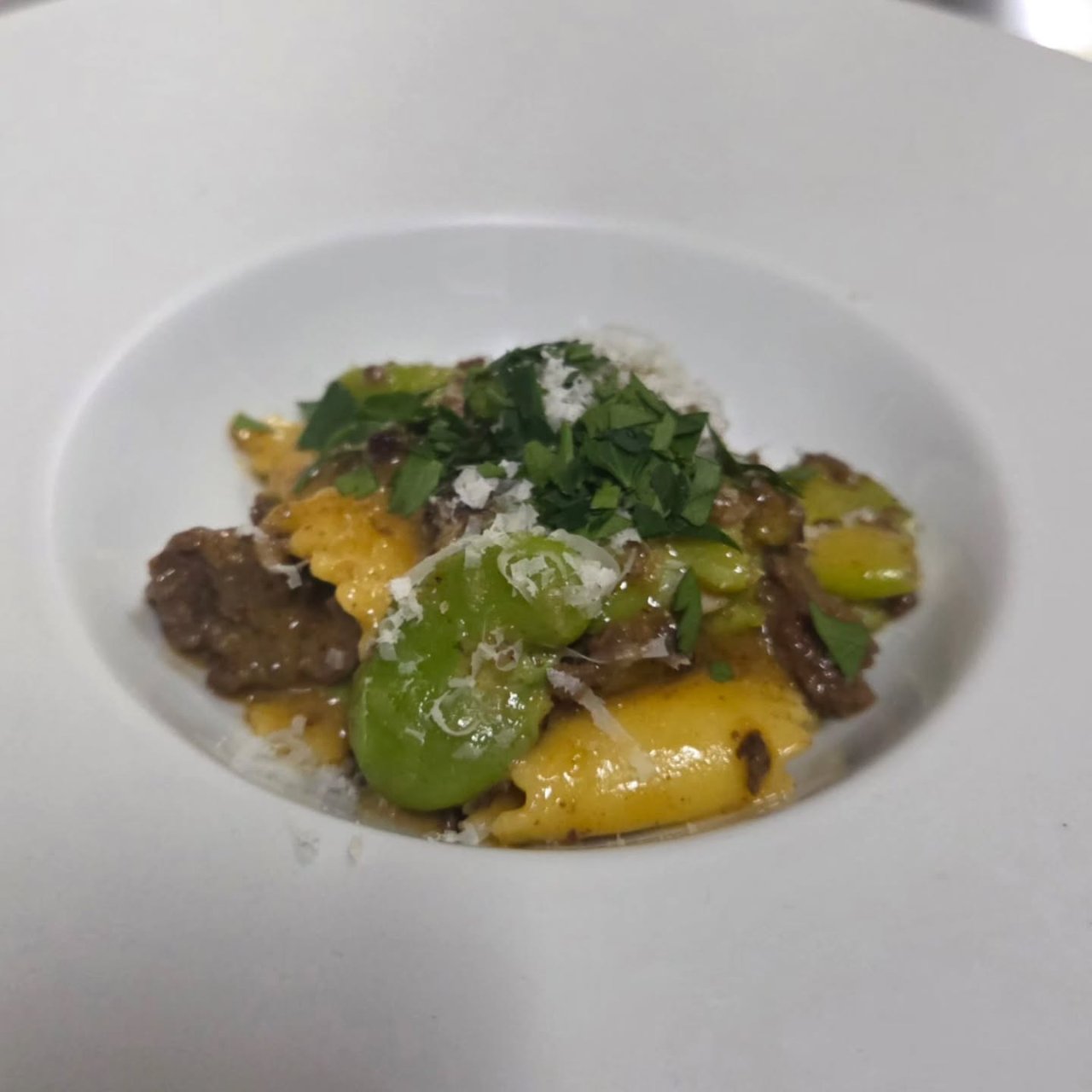 蝦夷鹿🫎蝦夷鹿パッパルデッレ空豆蝦夷鹿の赤ワインラグーに幅広の手打ちパスタのパッパルデッレ🧏♀️空豆は春ですね🌸#神楽坂...