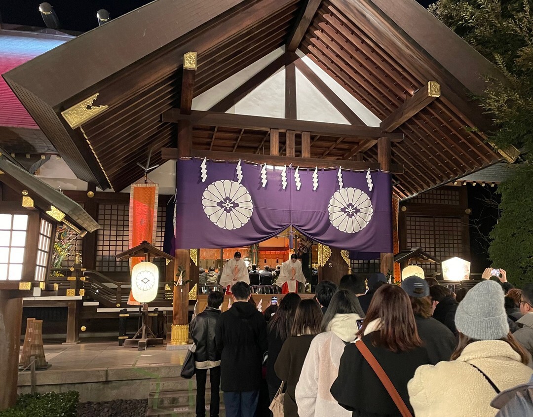「東京のお伊勢さま」といわれて親しまれている東京大神宮では、12月31日午後3時から、一年の穢れを祓い、新しい年に向けて心身を清める神事「年越の大祓」を斎行。1月1日の午前0時になると、年明けを告げる太鼓の音と共に拝殿の扉が開かれ、巫女たちが初詣の参拝者を迎えてくれます。1日は特別に19時までご朱印の授与も。また、三が日は参拝者に甘酒の振る舞いもございます。