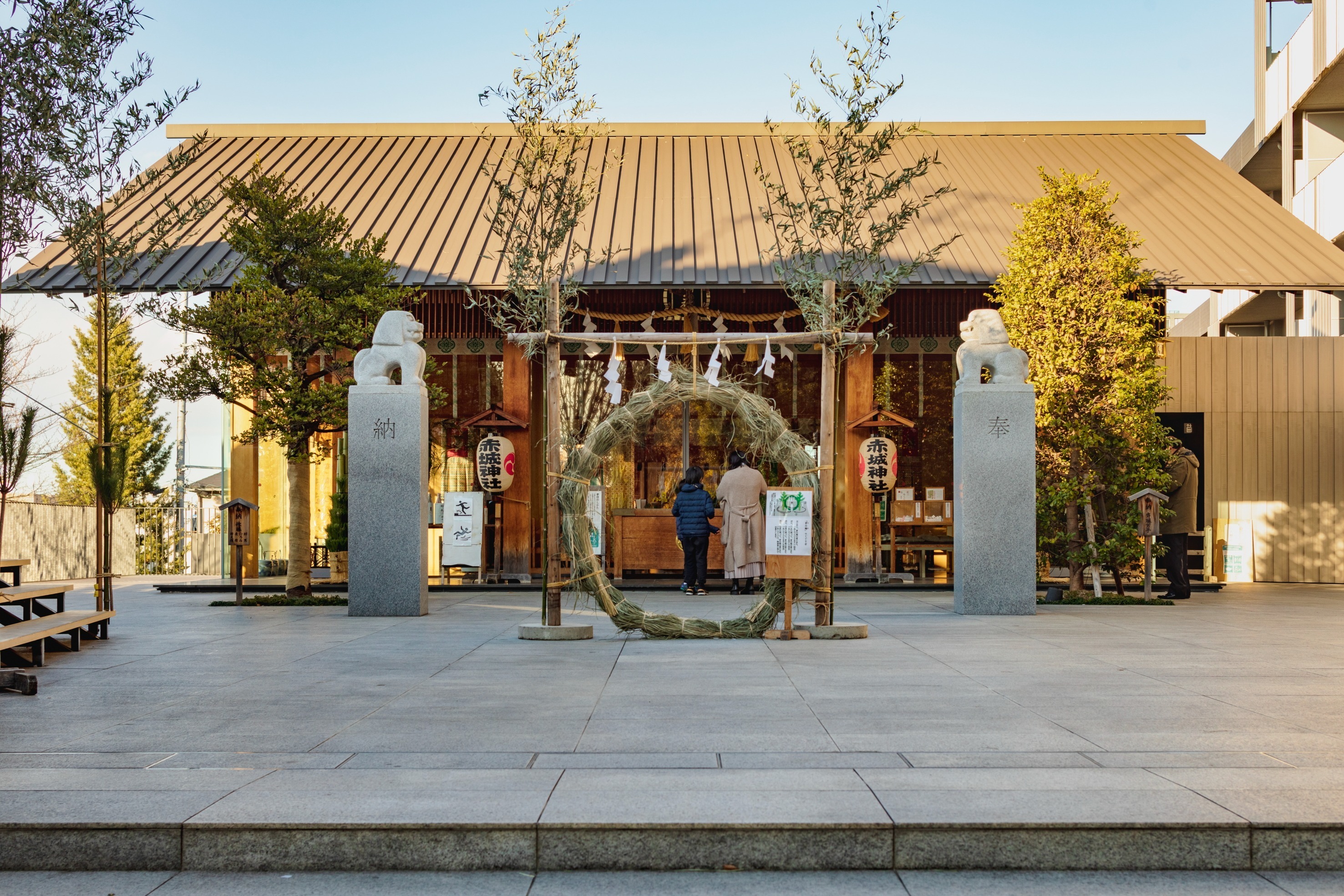 江戸時代、赤城神社は「江戸の三社」と称され、牛込の総鎮守として信仰を集めてきました。「江戸の三社」による祭礼の山車だけは特別で、江戸城の竹橋から内堀を通り、半蔵門に出ることが許されていたのです。赤城神社では年越しから新年にかけて二年参りが行えます。ライトアップにより美しく浮かび上がるガラス張りの拝殿。その幻想的な光景は参拝者に人気です。31日から1日にかけては、併設のあかぎカフェでも、夜通し甘酒が提供されますので、お参りのあとに温かい飲み物はいかがでしょうか。