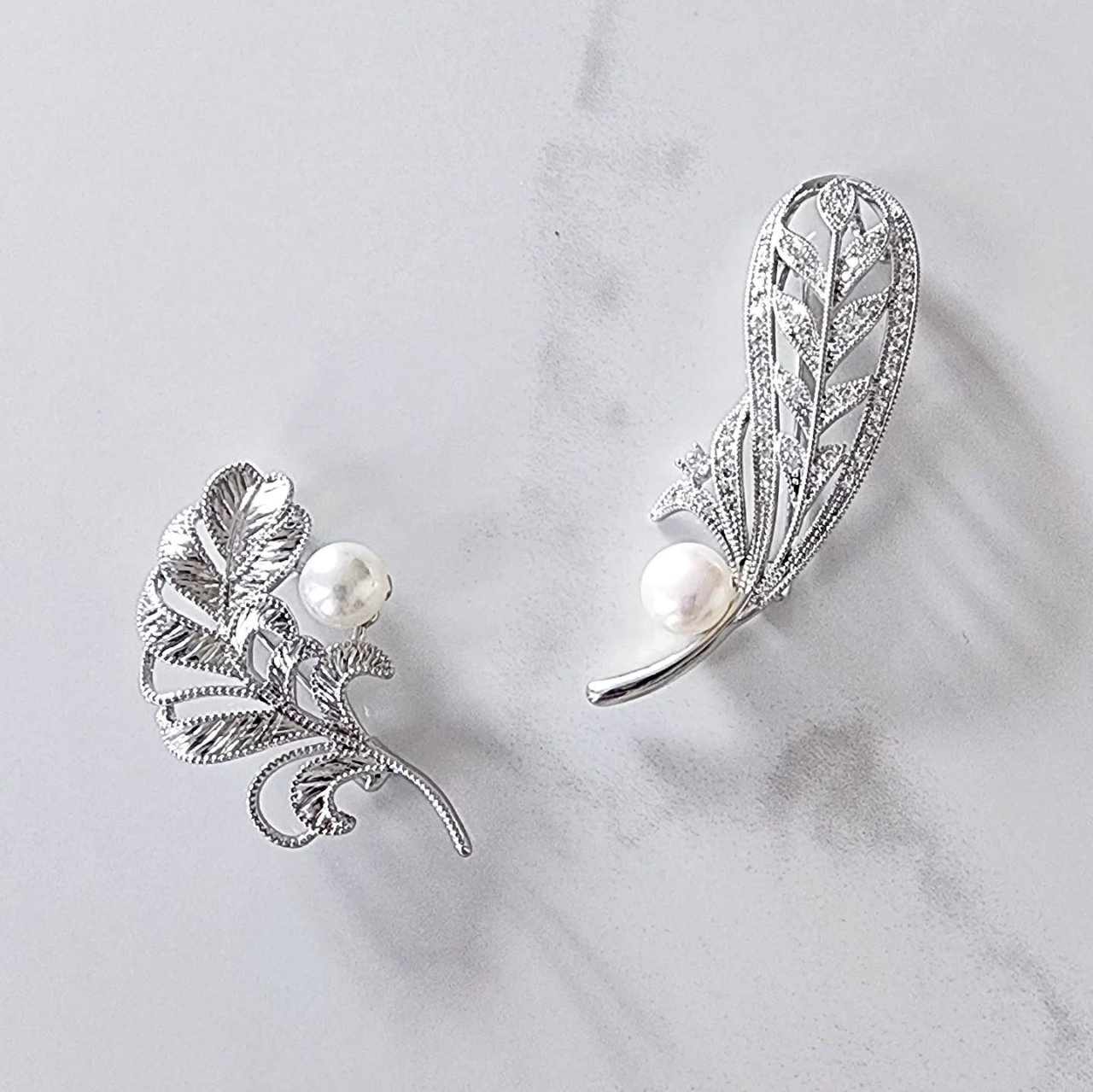 #ブローチ #羽デザイン #パール #真珠 #キュービックジルコニア #ジュエリー #かぐらむら #神楽坂 #アルテシアビジュー