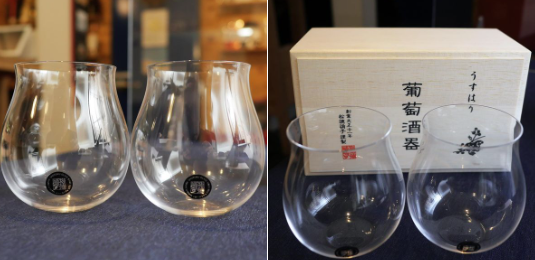 ■うすはりワイングラス入荷2脚セット 木箱入り ¥5,500(税込)容量:350ml 本体サイズ:口径66mm 高さ90mm木箱サイズ:11...