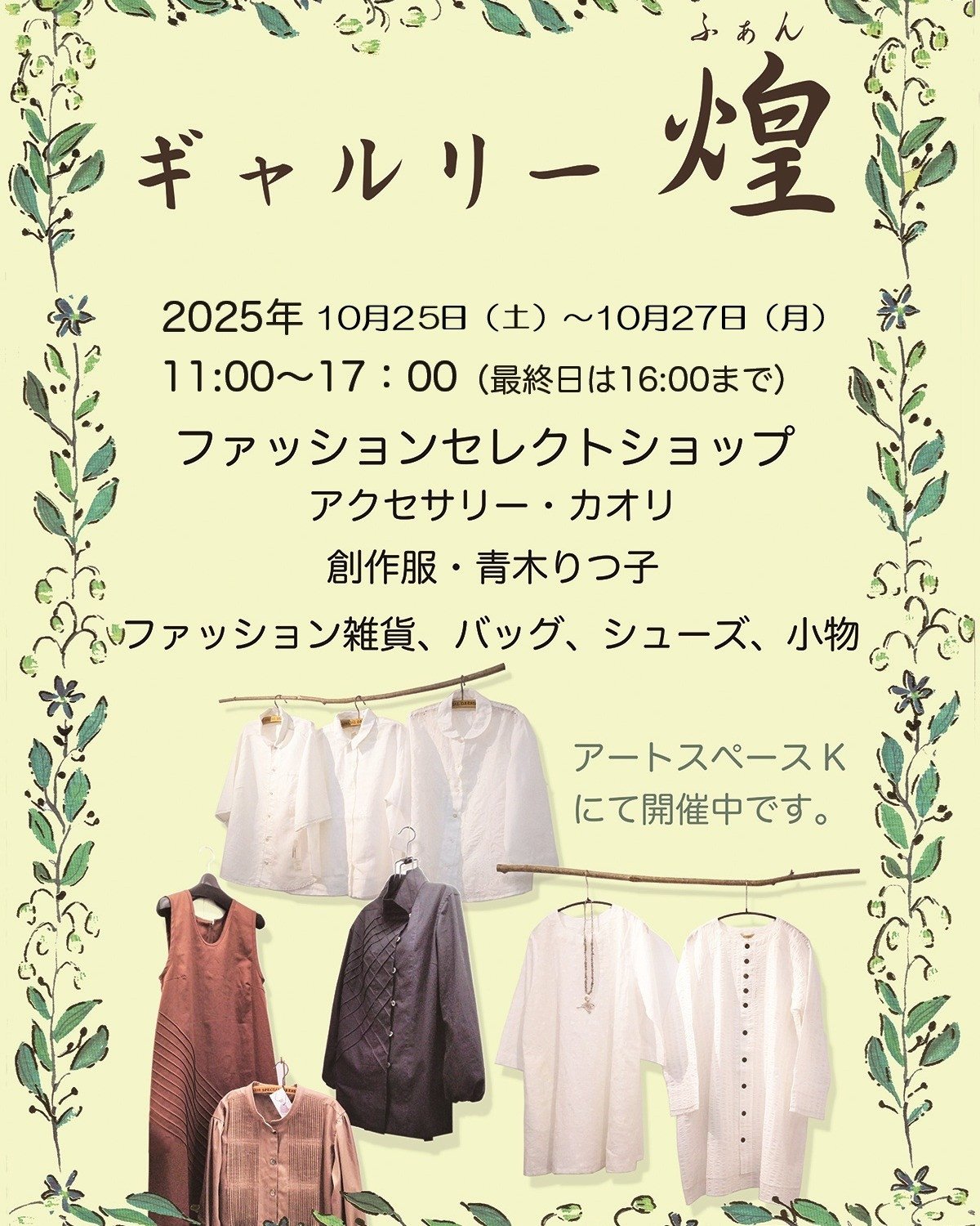 ギャルリー煌2025年 10月25日(土)~27日(月) 11:00~17:00(最終日は16:00まで) ギャルリー煌(ふぁん)藤田さんのポップアッ...
