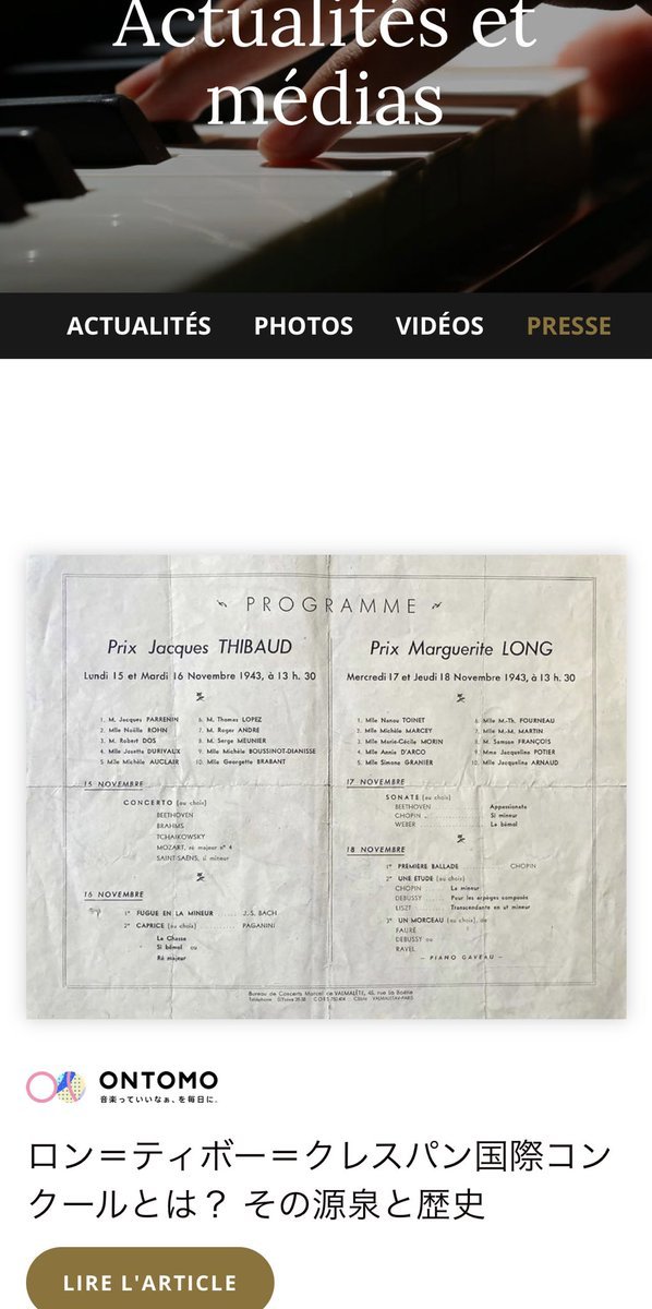 ロン=ティボー=クレスパン国際コンクールの公式ホームページで、ONTOMOの記事をご紹介いただきました!「LIRE L'ARTICLE」から...