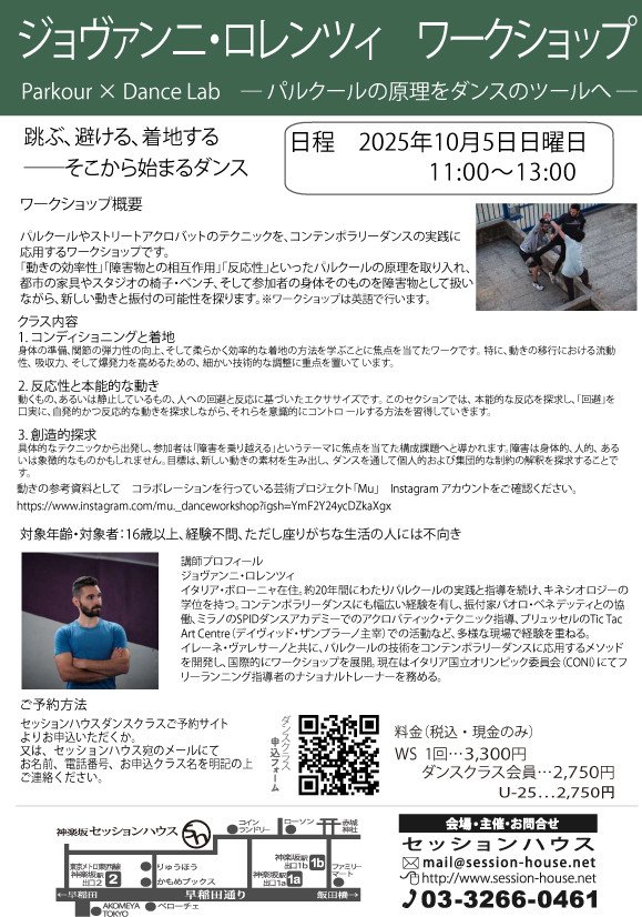 新しいダンスツールに興味のある人、パルクールどうでしょう。イタリアから第一人者がやってきます✨10月5日(日)11:00~13:00🤝非言...