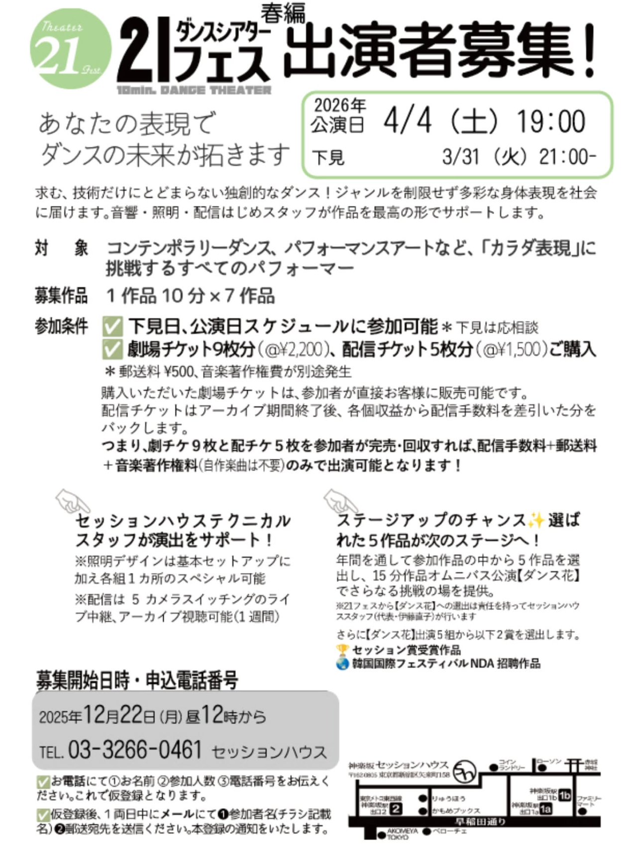 #21 #神楽坂セッションハウス #ダンスシアター21フェス #コンテンポラリーダンス #出演者募集 #ダンサー募集