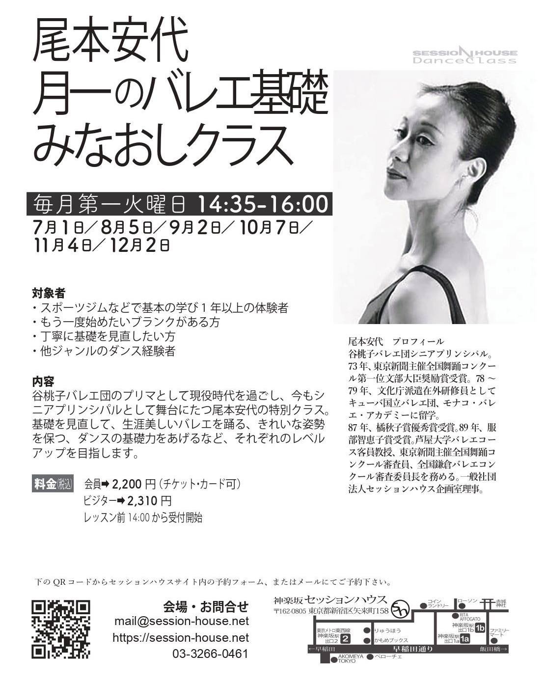 明日は尾本安代「月1のバレエ基礎みなおしクラス」