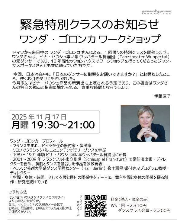 #神楽坂セッションハウス #1117ws #コンテンポラリーダンス #WandaGolonka #ピナバウシュ #特別クラス