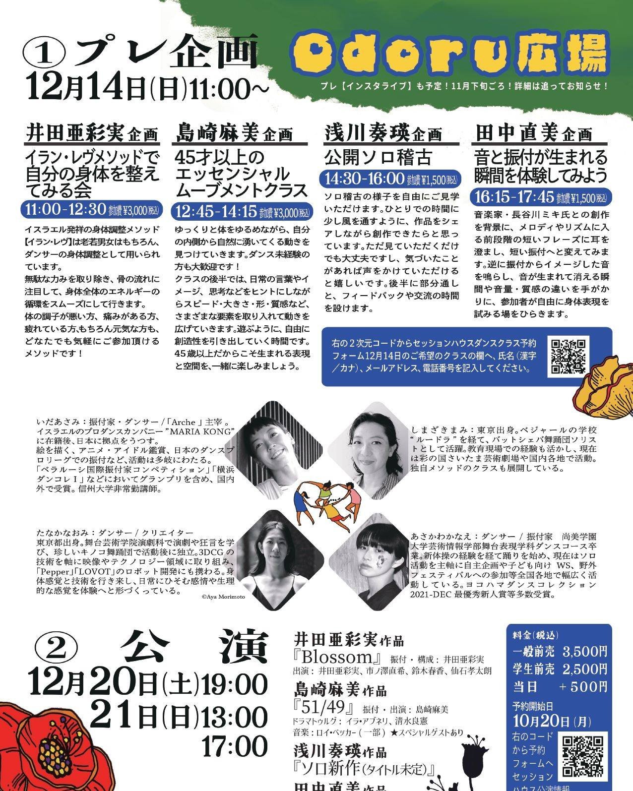 【来週末開催!】20代から50代までの4人のダンサーが贈る『Odoru 広場』公演多彩な4作品を一度に楽しめる特別な2日間。ぜひお越し...