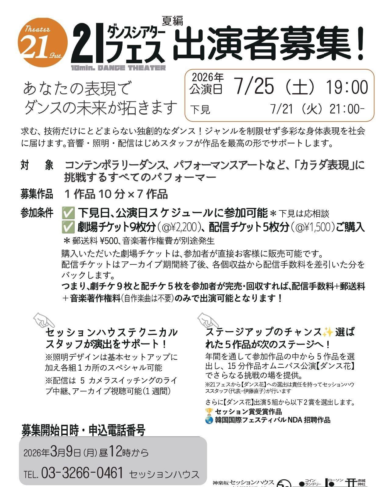 #神楽坂セッションハウス #ダンス募集 #シアター21フェス #コンテンポラリーダンス #出演者募集