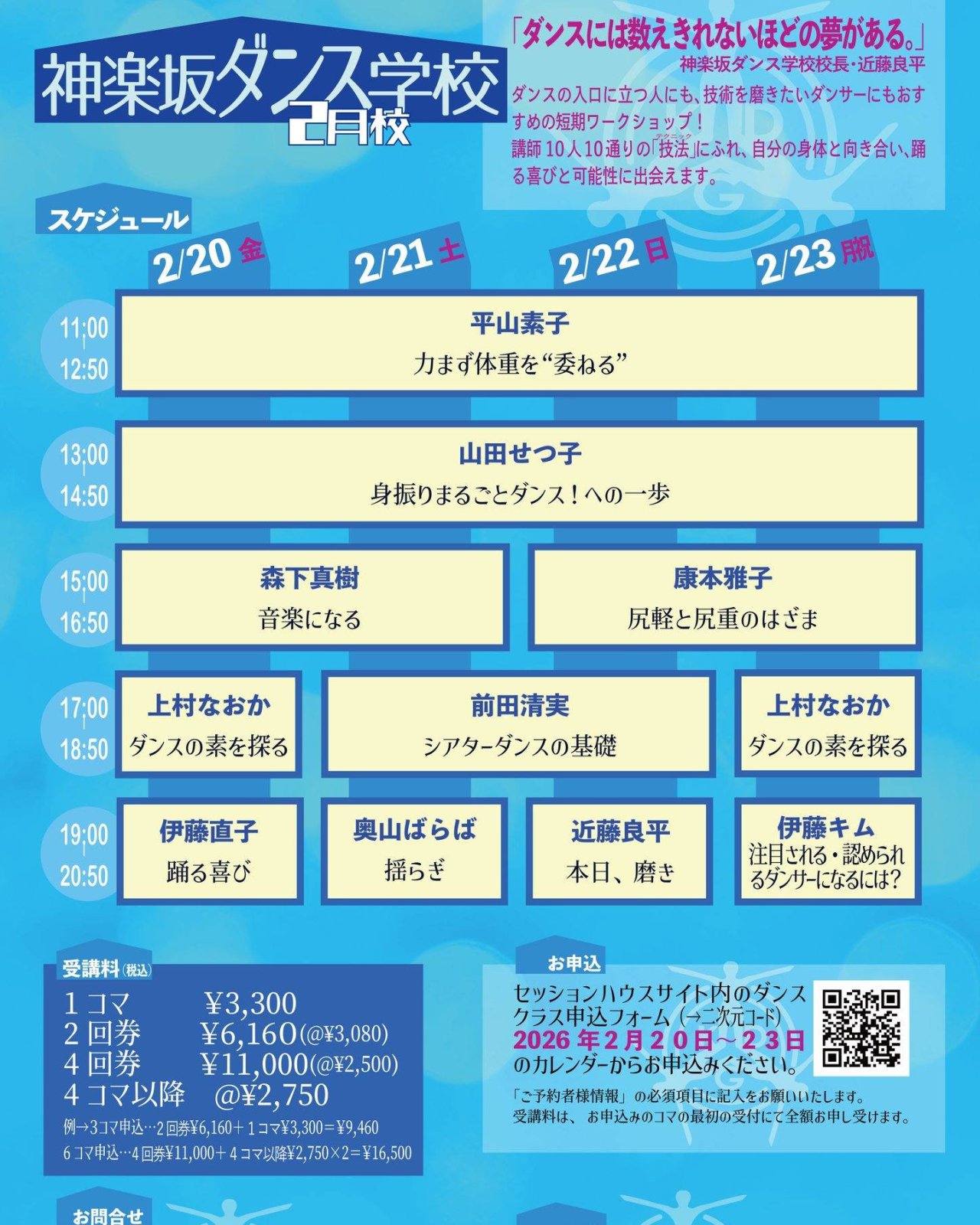 神楽坂ダンス学校2026〈2月校〉本日スタート!2/20(金)〜2/23(月・祝)開催「おどるということ」―ダンスの夢を見つける旅―ダンス...