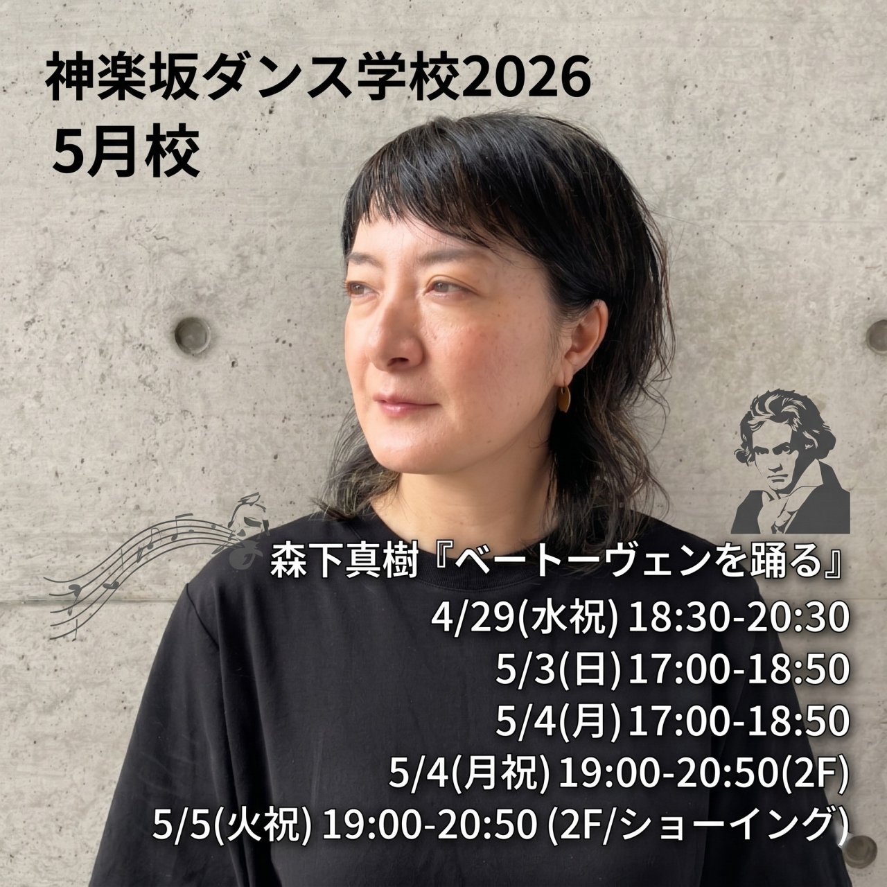 【神楽坂ダンス学校 5月校】開校まであと3日森下真樹『ベートーヴェンを踊る』音楽のバックダンサーになるのではなく、踊りか...