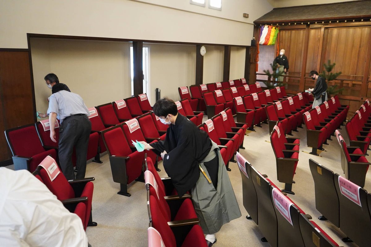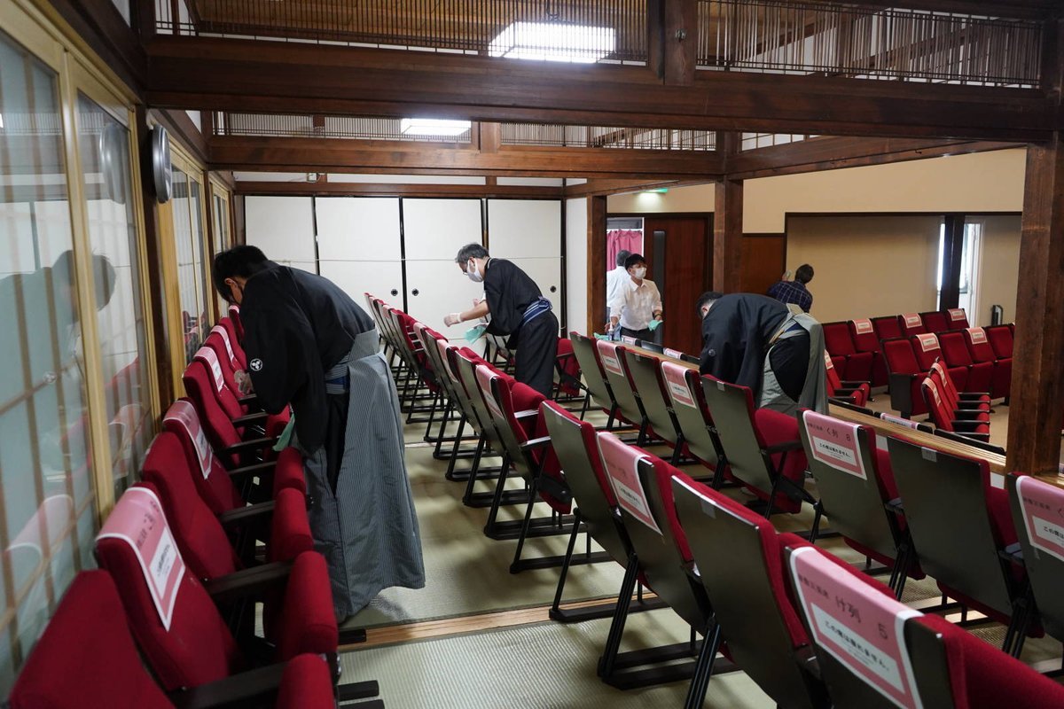 1部と2部の入替時には、客席やお手のふれる個所などを、出演者とスタッフにて除菌しました。