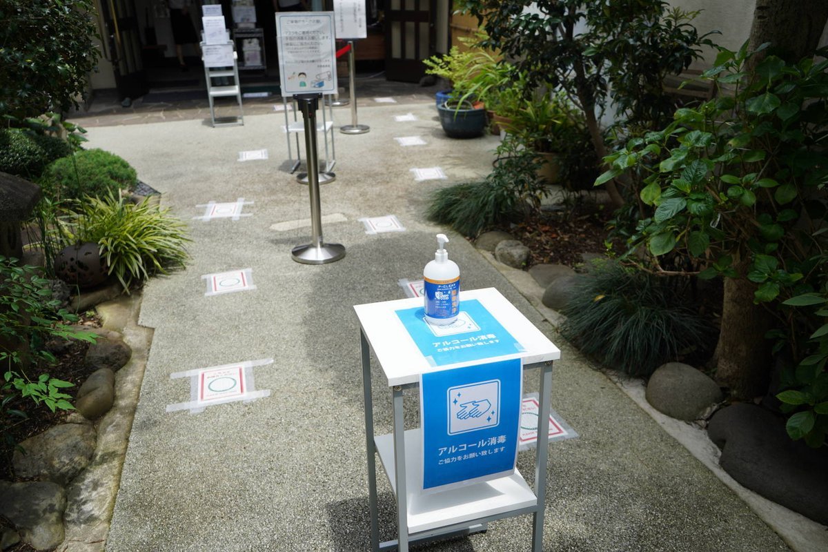 入場時はマスク着用の徹底、ソーシャルディスタンスの確保、検温と消毒などをお客様へお願いし、