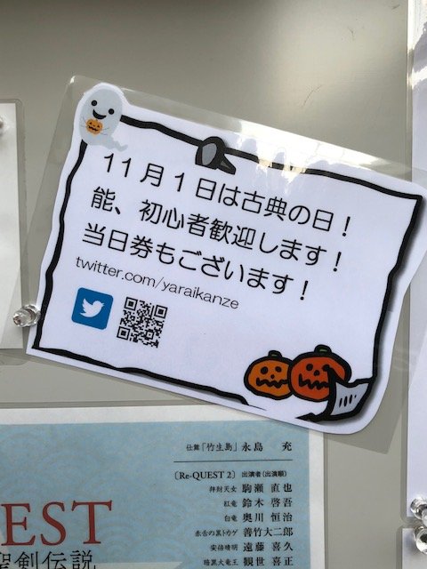 11/9(日)本日開催!#矢来能楽堂 当日券ございます。 直接お越しください。 東京は雨模様です。☔ どうぞお足元お気をつけてお越しください。