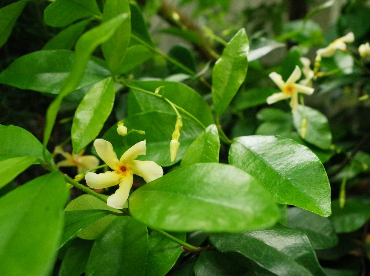 梅の木の根元には、定家葛(テイカカヅラ)が。