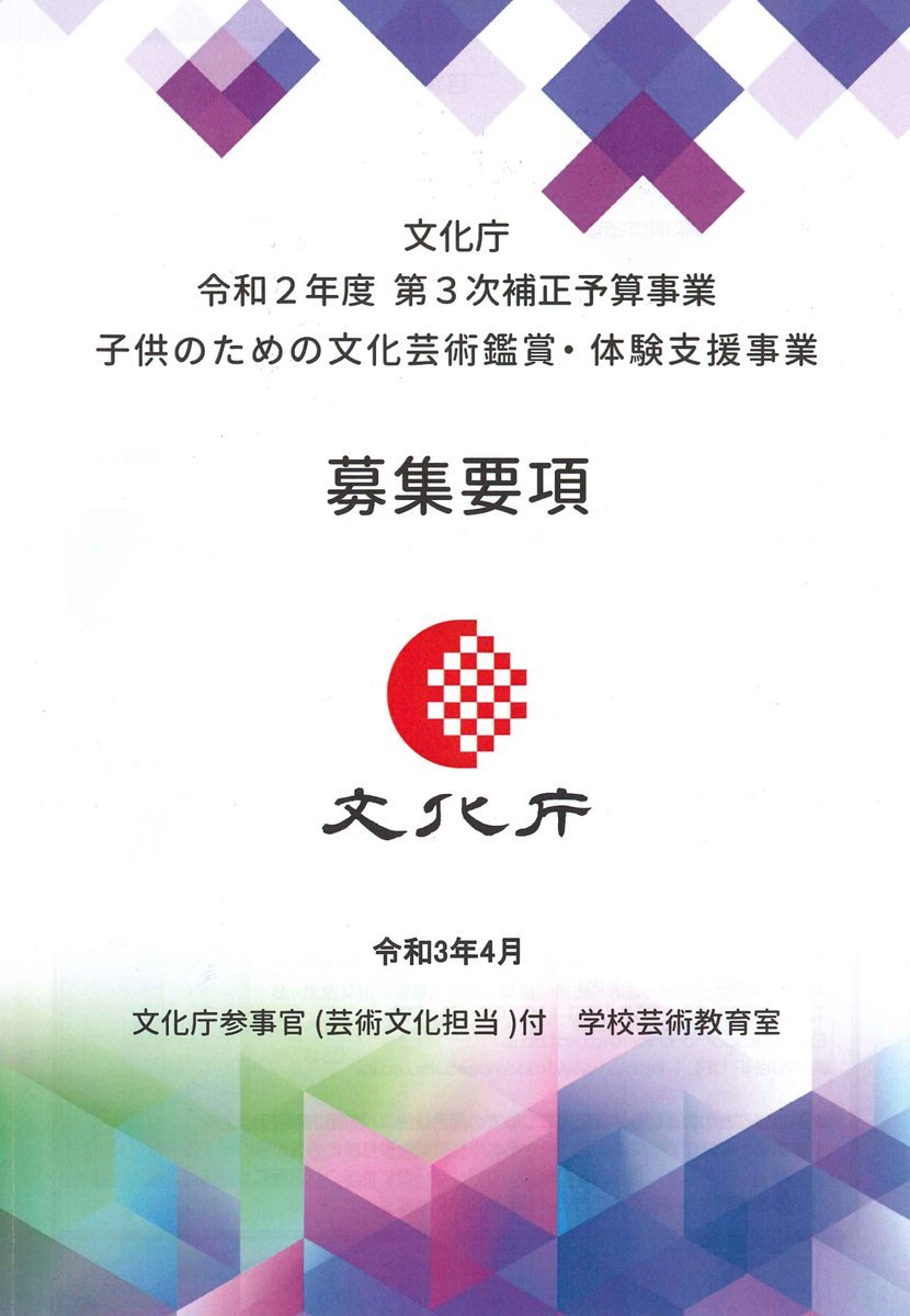 文化庁「子供のための文化芸術鑑賞・体験支援事業」実施校募集のお知らせhttps://t.co/Lg5IjR7kBG全国の小中学校が対象です♪...