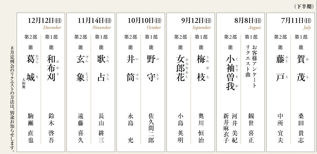 【観世九皐会定例会】令和3年下半期のセット券ご予約を開始しました。7月~12月のお席をまとめてご予約頂けます。ご予約はお申込...