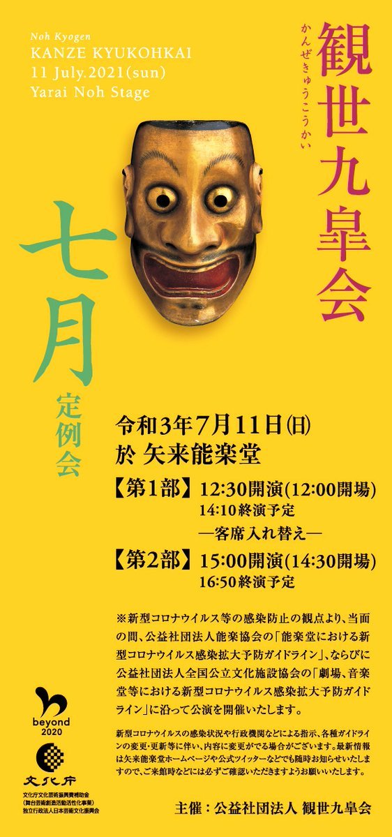 令和3年7月11日(日)観世九皐会7月定例会於 矢来能楽堂【第1部】12:30~ 能「賀茂」桑田貴志【第2部】15:00~ 狂言「蟹山伏.....