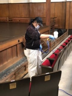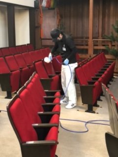 本日、矢来能楽堂の座席イスすべて、劇場イスメーカーのコトブキシーティングサービスさんに、抗菌・抗ウイルスコーティング加工をしていただきました。