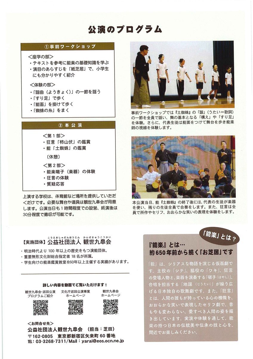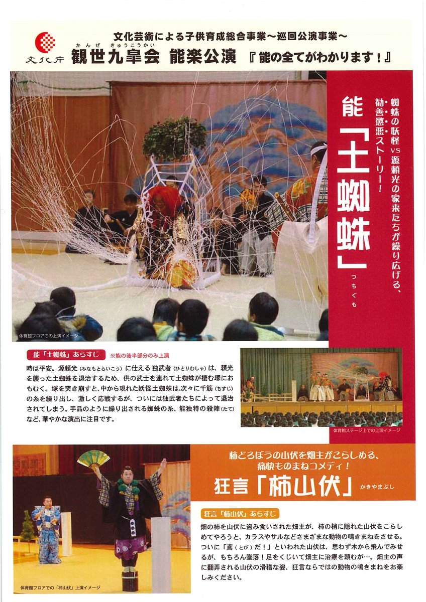 全国の小中学校の体育館などで、学校負担がなく、能楽や芸術を鑑賞・体験していただけるものです。