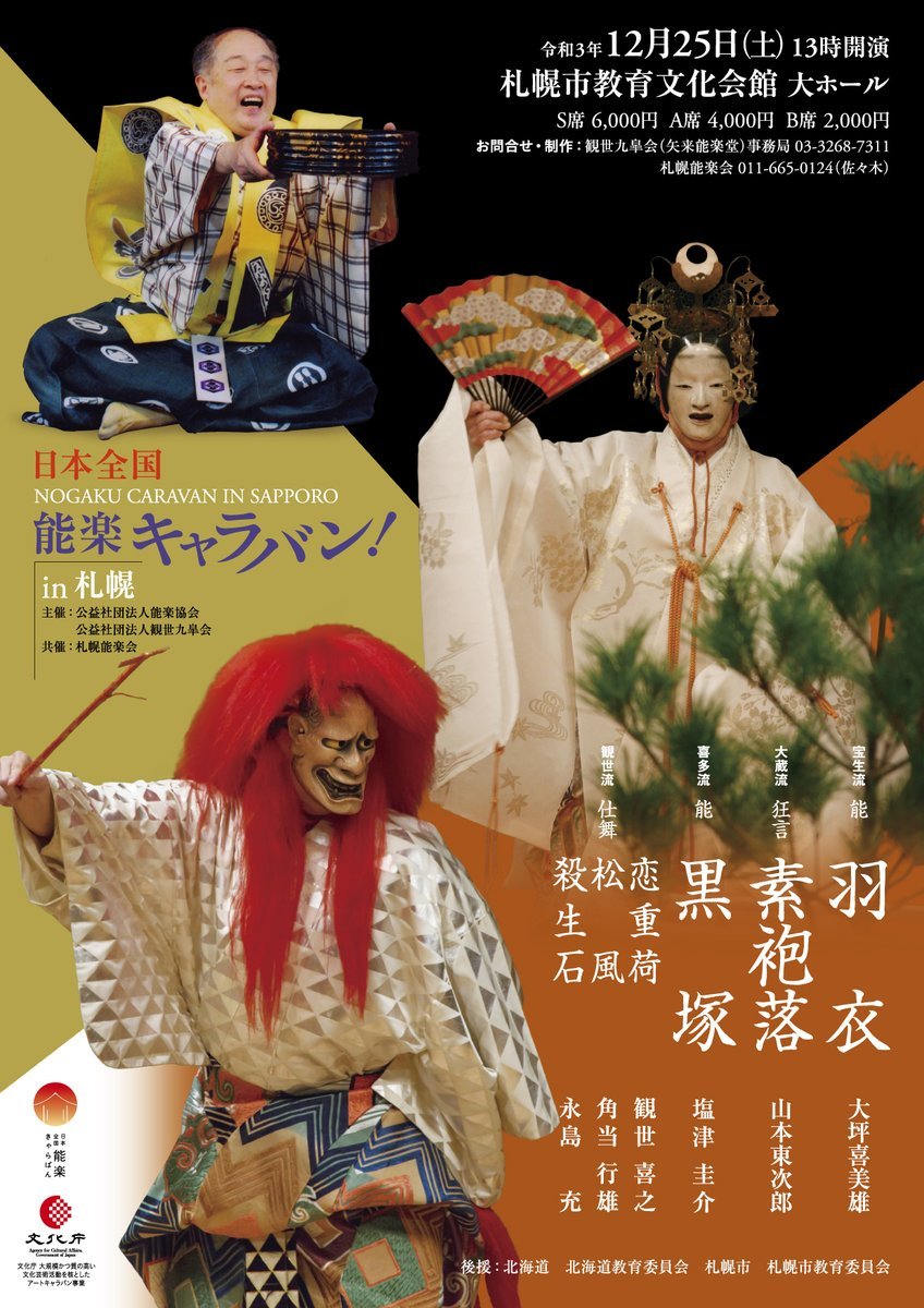 当日券ございます!12月25日(土)【日本全国 能楽キャラバン!in札幌公演】 札幌市教育文化会館 大ホール 能舞台宝生流 能「羽...